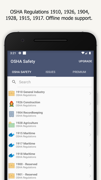 تصميم التطبيق سهل الاستخدام وعرض اللوائح الواضح والموجز يجعله أداة أساسية لأصحاب العمل والمحترفين في مجال السلامة والعمال. مع ميزة الوضع الغير متصل بالإنترنت، يمكن للمستخدمين الوصول إلى المعلومات التي يحتاجونها حتى في المواقع البعيدة بدون اتصال بالإنترنت. سواء كنت في صناعة التصنيع، الخدمات، المستودعات، المجال الطبي/الأسناني، أو صناعة البناء، فإن هذا التطبيق المجاني هو أداة يجب امتلاكها لضمان الامتثال لقوانين OSHA.